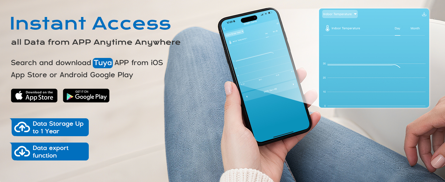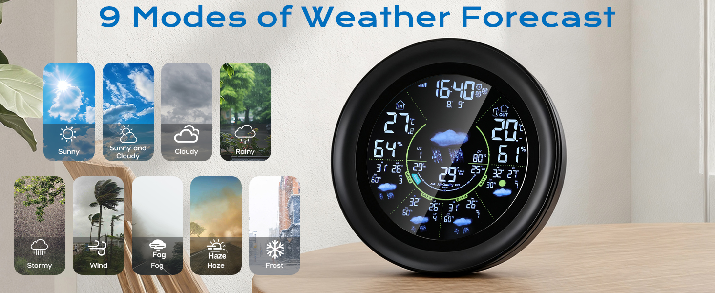 - 【Smart WiFi Weather Station】Stay effortlessly connected to your home's climate with our WiFi-enabled weather station. Once connected to the Tuya smart App, it provides real-time monitoring of indoor/outdoor temperature and humidity, plus accurate 5-day weather forecasts. The station features automatic time and date synchronization through the app, eliminating manual setup hassles. Support online viewing of 1 year data graphs and export of data recorded. Perfect for smart home enthusiasts.
