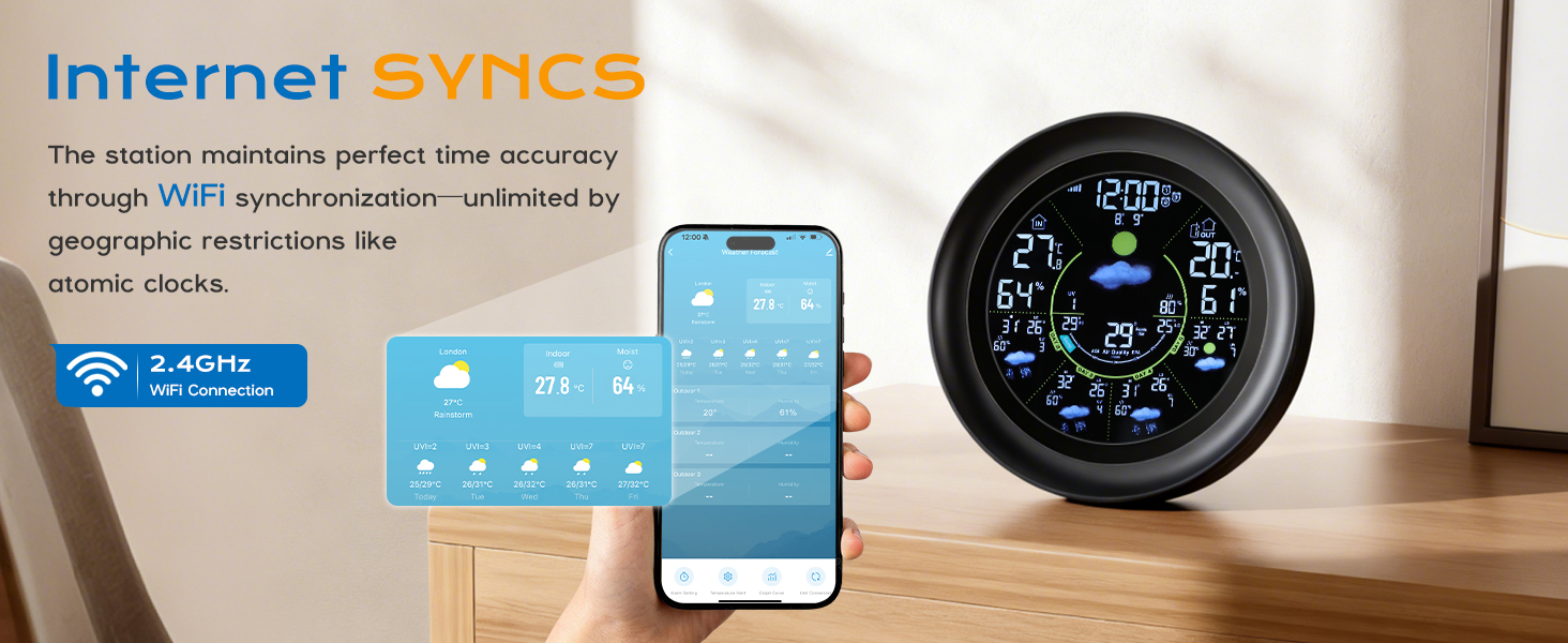 - 【User-Friendly Design】Built-in memory chip saves user settings. 3 Customizable alarms with snooze can be set via Smart APP. Features ultra-precise WiFi time sync (no signal limits). Quickly and automatically synchronizes with application data after power failure. Includes: main unit (5V adapter included) and outdoor sensor (requires 2 AA batteries). Note: Compatible with 2.4GHz WiFi only. Ideal for homes, gardeners, and smart home systems.