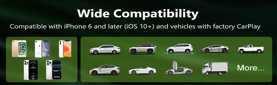 - Broad Car Compatibility Support: This wireless CarPlay adapter is designed for cars equipped with factory-wired CarPlay. It works with most vehicles from 2016 onward and supports devices running iOS 10 or later. The CarPlay adapter maintains all original steering wheel buttons, touchscreen functions, and in-car controls, allowing you to use your apps as usual—safely keeping your eyes on the road.