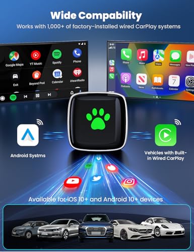 - 【Broad Vehicle Compatibility】: Please make sure your car has built-in wired CarPlay. It’s compatible with any car that supports original wired CarPlay. It maintains the original steering wheel, touch screen, and button controls, allowing you to interact with your apps as you always have—while keeping your eyes on the road.Compatible with Wired CarPlay Car since 2016 , iOS 10+ devices & Android Auto.Supporting 927+ vehicle models (excludes Tesla/BMW).