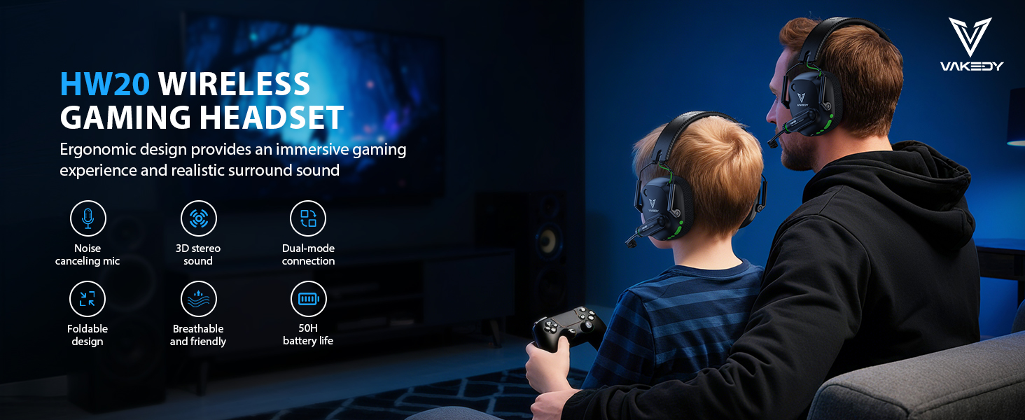 Wireless Gaming Headset, 2.4GHz USB & Bluetooth Gaming