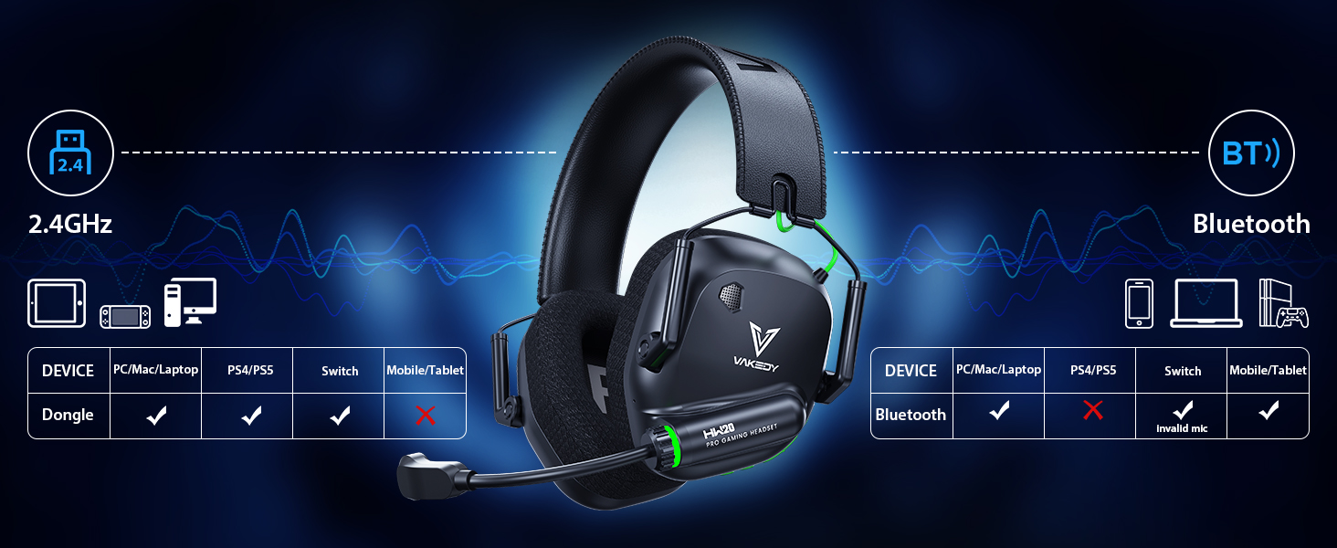 - 【Please Note】⚠️Bluetooth mode is not compatible with PS4/PS5. ⚠️The microphone is not supported for Switch. ⚠️Wireless gaming headsets are not compatible with all Xbox series consoles