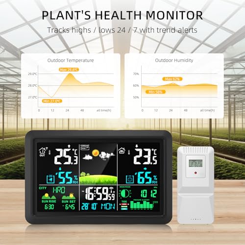 【Professional-Grade Data Tracking at a Glance】Goes beyond basic readings. It logs MAX/MIN values for indoor/outdoor temperature and humidity, and displays a 24-hour barometric pressure history chart. This detailed "weather journal" helps you accurately predict trends for gardening, travel, or health management.