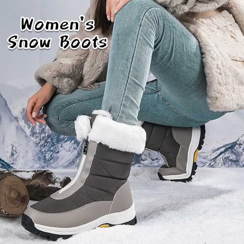 Women’s Non-Slip Warm Zipper Snow Boots, Anti-Slip Mid-Calf Winter Boots, Waterproof & Lightweight, for Outdoor Winte