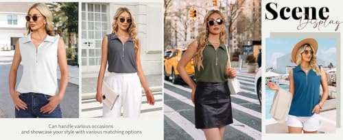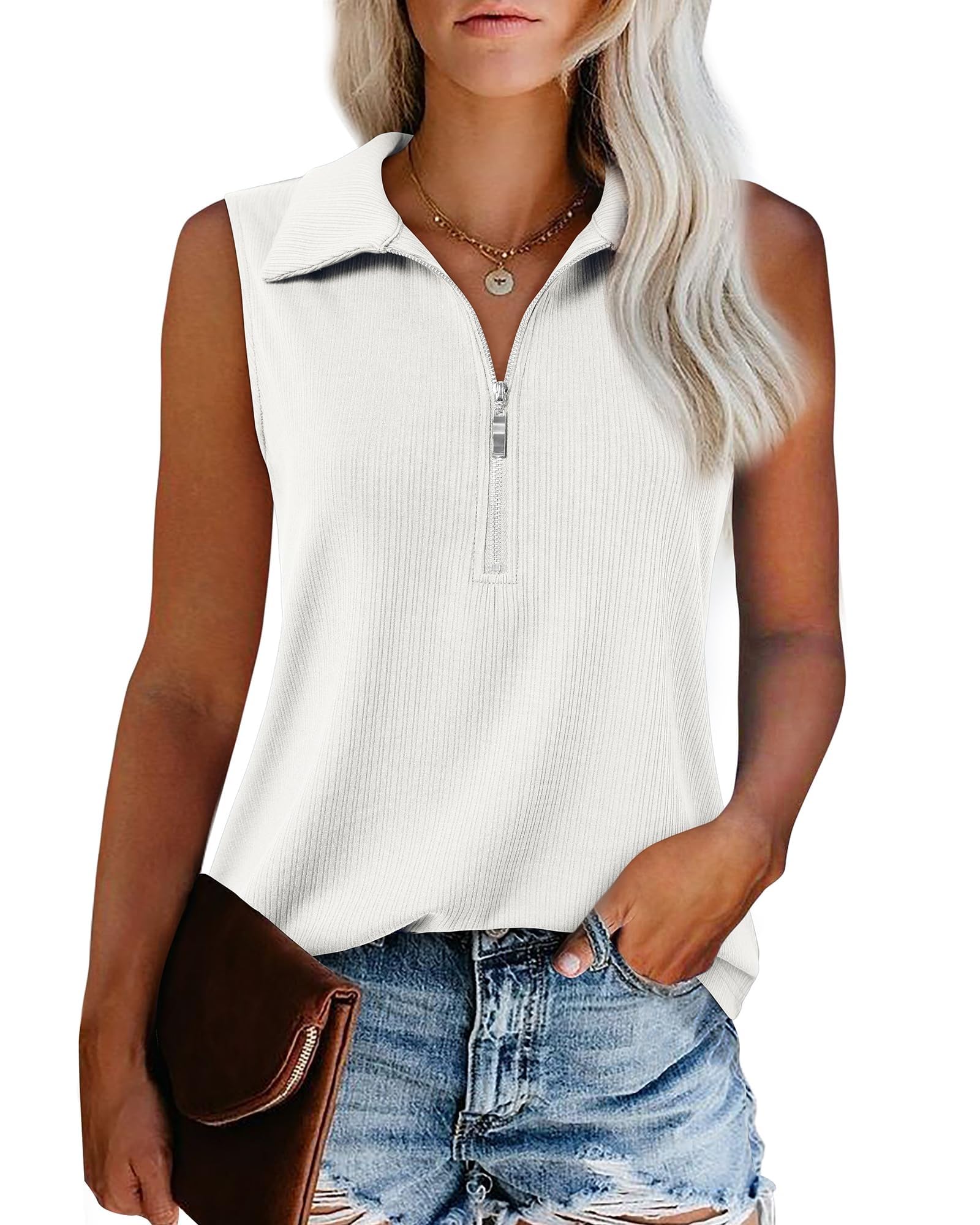 Women's Summer Tops, Half Zip Polo Neck, Fashionable and Casual Ribbed Vest, Loose Fi