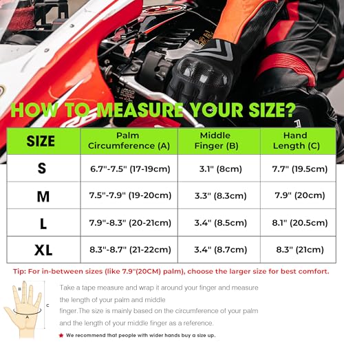 Reinforced Palm with Anti-Slip Grip: Soft yet durable faux suede palm provides excellent elasticity and conforms naturally to your hand's shape, offering a comfortable fit with zero constriction. Double-layered fabric in the throttle-contact area enhances durability, while silicone-printed padding ensures superior grip – essential features of the best motorcycle gloves for long rides.