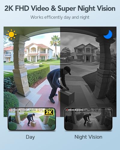 【Ultra-Crystal Clear 2K HD Resolution & IR Night Vision】Capture every detail with stunning 2K HD video quality. Our video doorbell delivers vibrant images and videos, ensuring you never miss important moments or details, whether it's day or night with this exceptional camera doorbell. Stay safe even in low-light conditions with built-in infrared night vision, allowing you to see up to 33 feet in complete darkness.