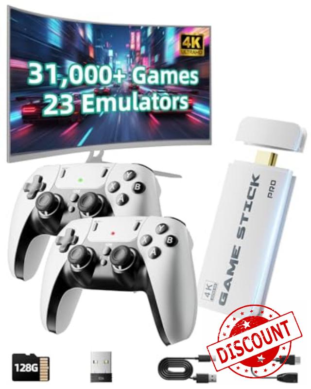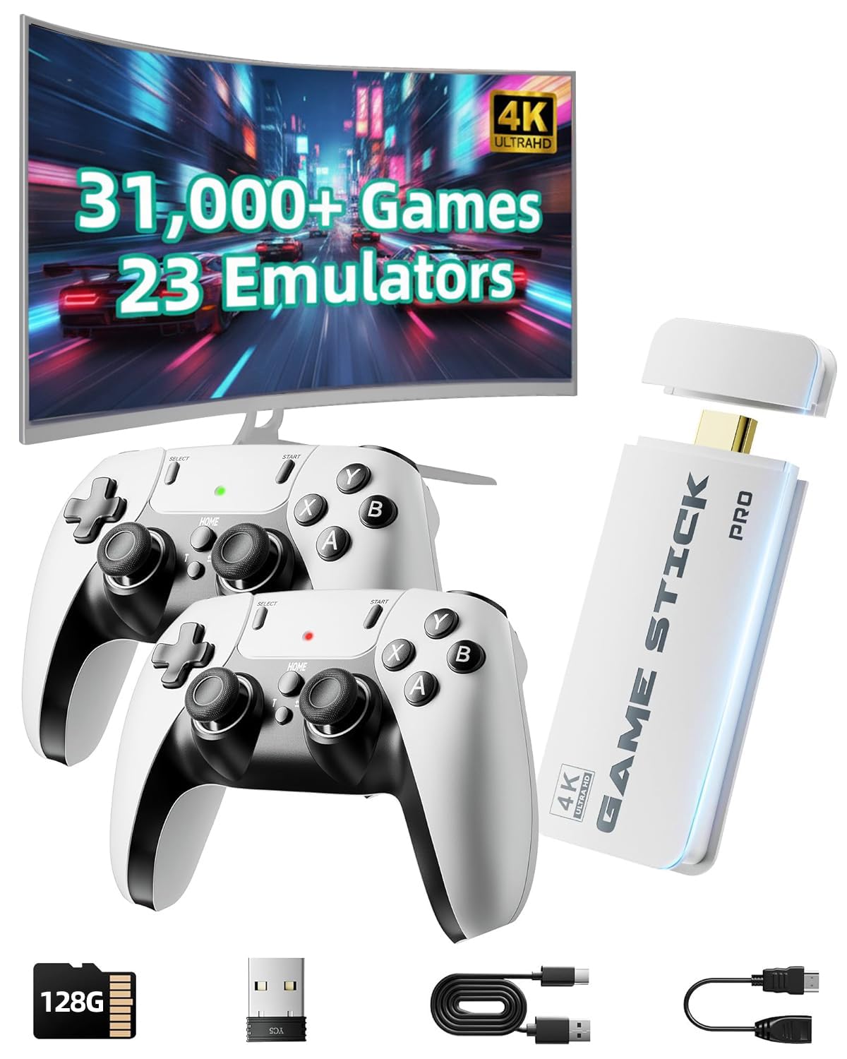 XYELLOWICON Retro Games Console – 4K HDMI TV Console with 31,000+ Built-in Games, 2 Wireless Controllers, 23 Emulators, 128GB Memory & Plug & Play