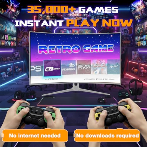 - 【35,000+ Games, Instant Play】: Dive straight into nostalgia with a massive library of 35,000+ pre-loaded retro classics. Supporting 30+ emulators, it's truly unbox, plug, and play—no downloads or complicated setup required.