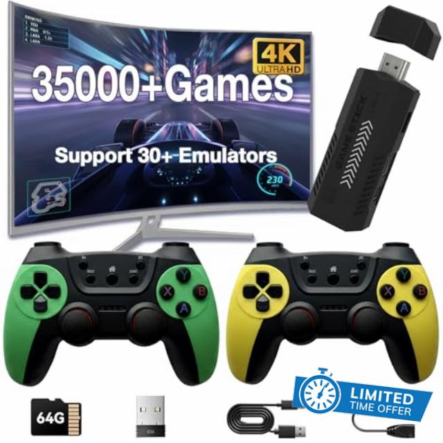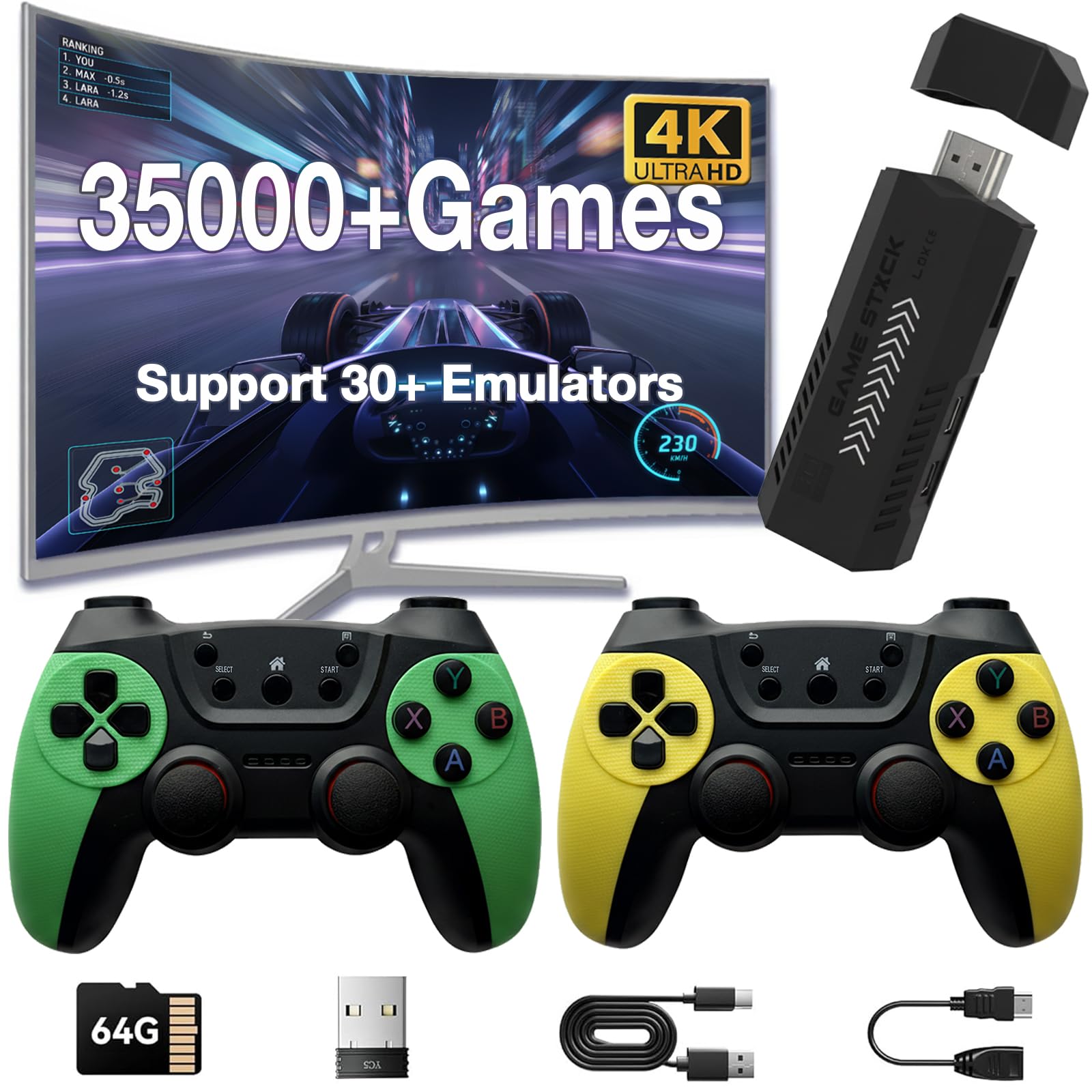 XYELLOWICON X2 Pro Game Stick 4K- 35,000 Retro Games, Retro Gaming Console with 64GB Built-In Storage, 30+ Emulators, and 2.4G Wireless Controlle