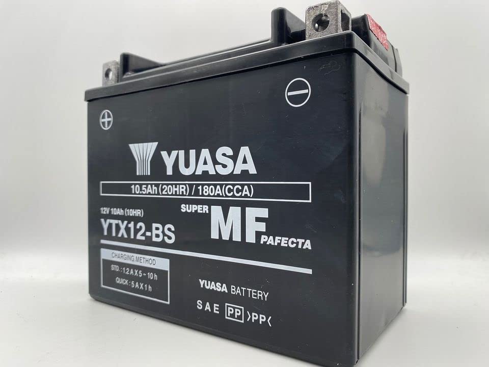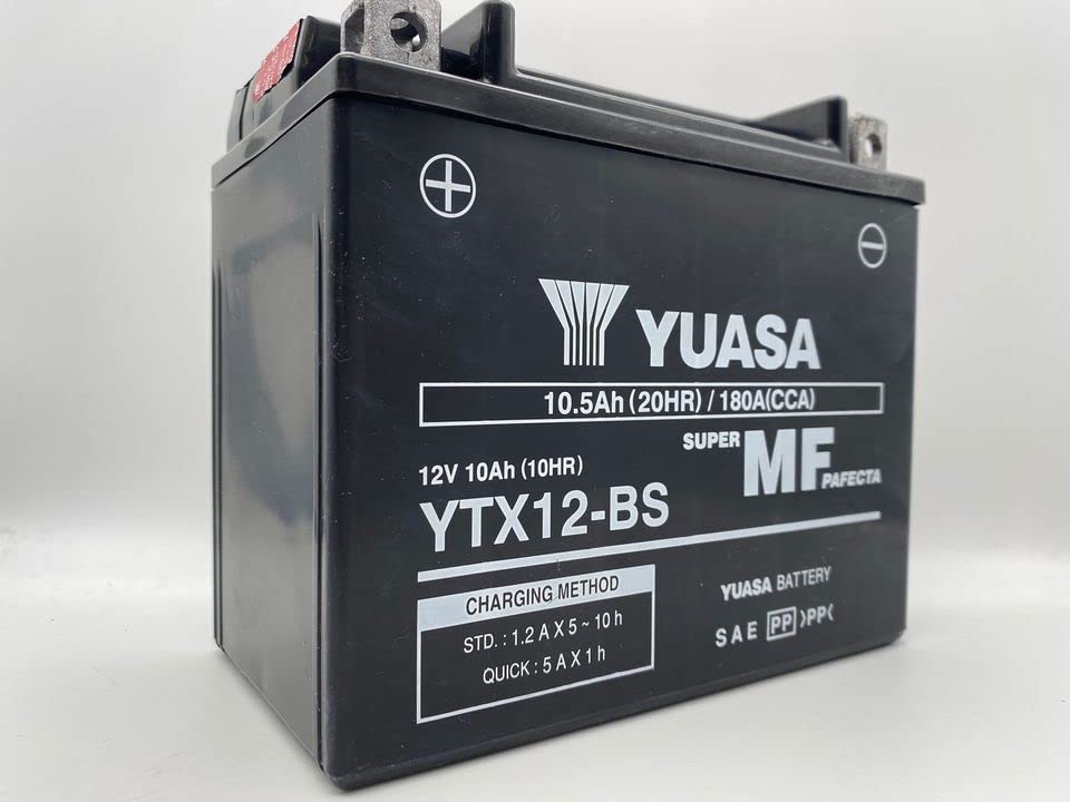 Yuasa Battery YTX12-BS Motorcycle Replacement Battery Original Yuasa battery supplied sealed, charged and ready for installation. We Motori Shop always test all our batteries before shipping them and always insert the test in the box that proves the charge and efficiency of each battery. Technical data: 10Ah and 12V Dimensions: 150 x 87 x 131 mm Declared start: 180 (but in reality it is superior).