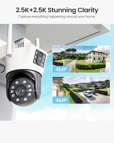 - 【Dual 2.5K Ultra HD with Full-Color Night Vision】Featuring two state-of-the-art 2.5K cameras, this PT camera captures stunningly clear Ultra HD images. Boasting integrated infrared and white light technology, it offers three advanced night vision modes: black and white, vibrant full-color, and intelligent full-color. Furthermore, its impressive 30-meter night vision range guarantees dependable surveillance, even in the deepest darkness.