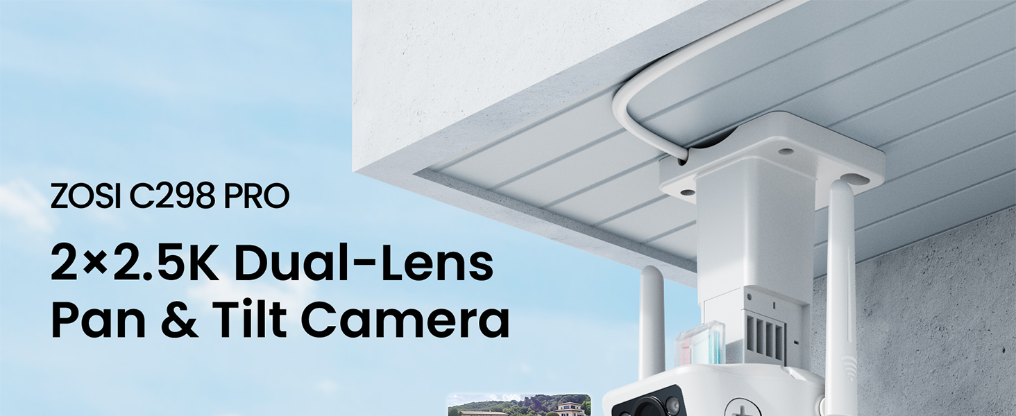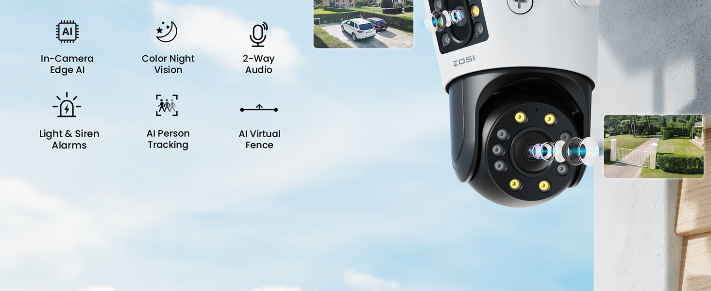 ZOSI 4MP+4MP Dual-Lens WiFi Outdoor Camera, Dual View