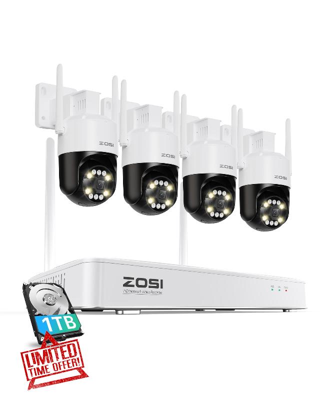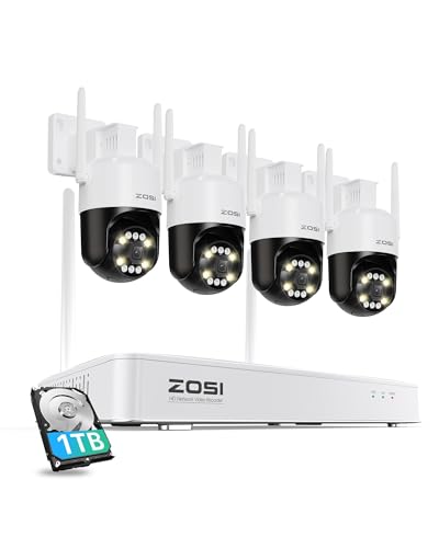 ZOSI Wireless CCTV Camera System, 8CH 4K NVR with 1TB HDD, 4Pcs 5MP Wi-Fi 6 Surveillance Cameras Outdoor, AI Person/Vehicle Detection, Pan/Tilt, Color Night Vision, Siren Alarm, Plug-i