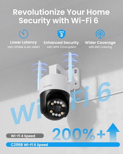 - 【3K 5MP UHD WiFi Security Camera – Crystal Clear Surveillance Day & Night】Experience ultra-sharp 3K 5MP (2880×1620) resolution with the ZOSI C296 WiFi security camera, delivering vivid colors, sharper details, and a lifelike viewing experience—whether day or night.