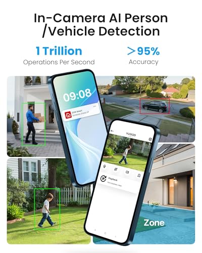 - 【355° Pan/Tilt + AI Detection + Instant Alerts – Smarter Security】AI human/vehicle detection reduces false alarms, while custom activity zones let you focus on key areas. The wireless PT security camera rotates 355° horizontally & 95° vertically, covering every angle.Get real-time app alerts, spotlight warnings, and siren triggers when motion is detected.Two-Way Audio lets you warn intruders remotely.