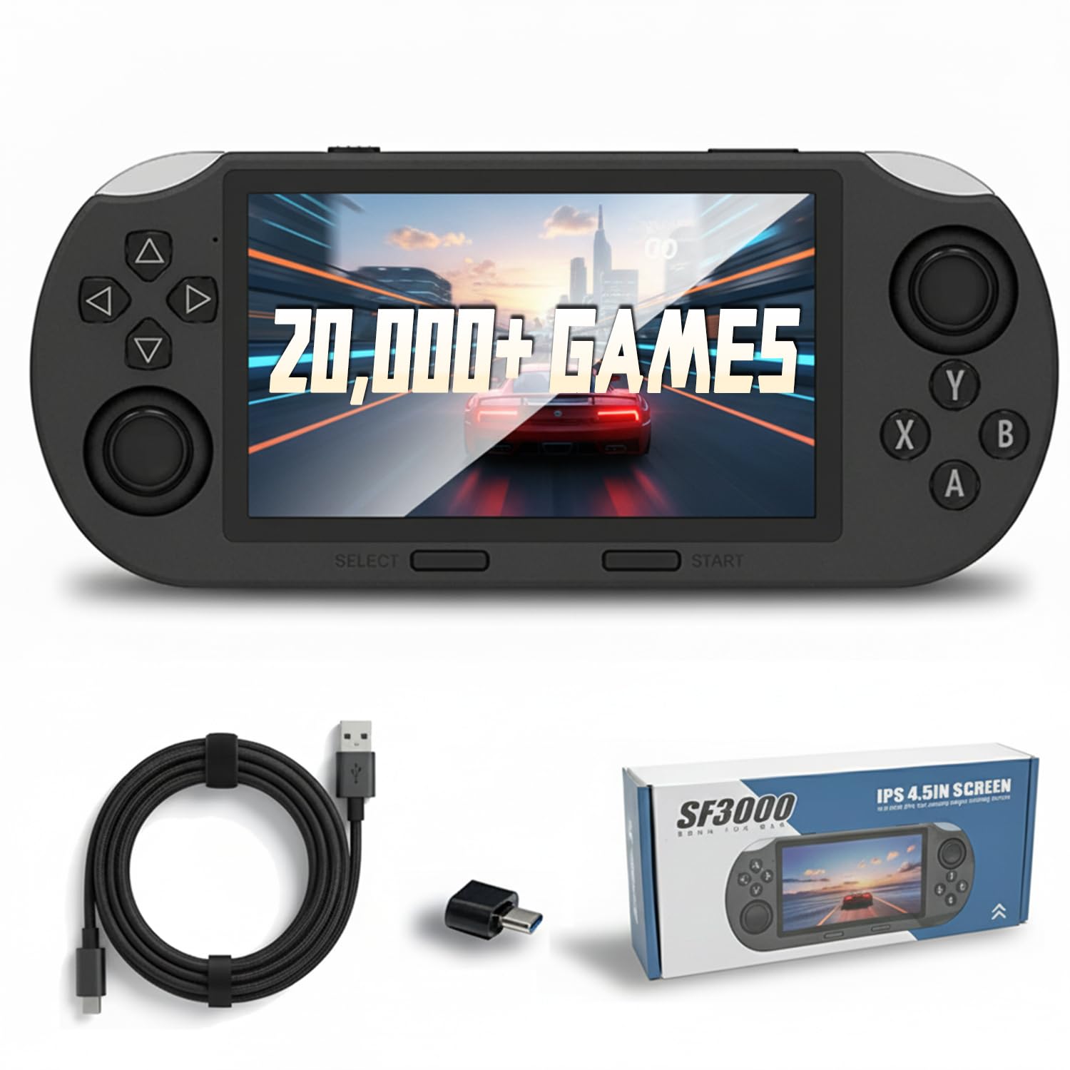 ZYGSEVE New Handheld Game Console, 20000+ Pre-Installed Games, 4.5-Inch HD IPS Screen, 3000mAh Long-Lasting Battery, Dual 3D Joysticks