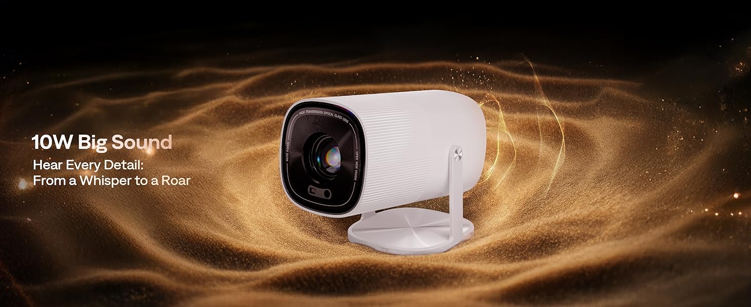 - 【Ultra-Quiet Operation with Upgraded 10W HiFi Audio】For the ultimate home theater experience, the S100 mini projector has been fully upgraded with a next-generation ultra-quiet cooling system and enhanced 10W HiFi stereo speakers. Operating at under 25dB, it delivers whisper-quiet performance that keeps you immersed in your favorite movies or games without distraction. The powerful 10W speakers produce richer bass, clearer dialogue, and more dynamic sound, making every scene come alive. Enjoy crystal-clear visuals and cinematic audio—anytime, anywhere.