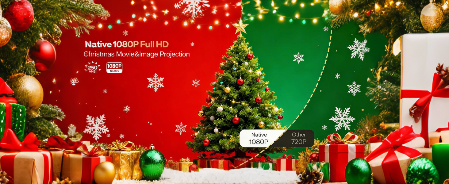 - 【Portable & Travel-Ready | Cinema Anywhere】 Take your movies, games, and presentations anywhere with the compact, lightweight design of this ceiling projector. Easily slip it into a backpack or carry-on, set it up in seconds, and enjoy big-screen entertainment wherever you go—living room, bedroom, office, garden, or even on trips. Despite its small size, this christmas projector delivers vivid 1080p visuals and immersive sound, proving that great performance doesn’t have to be bulky.