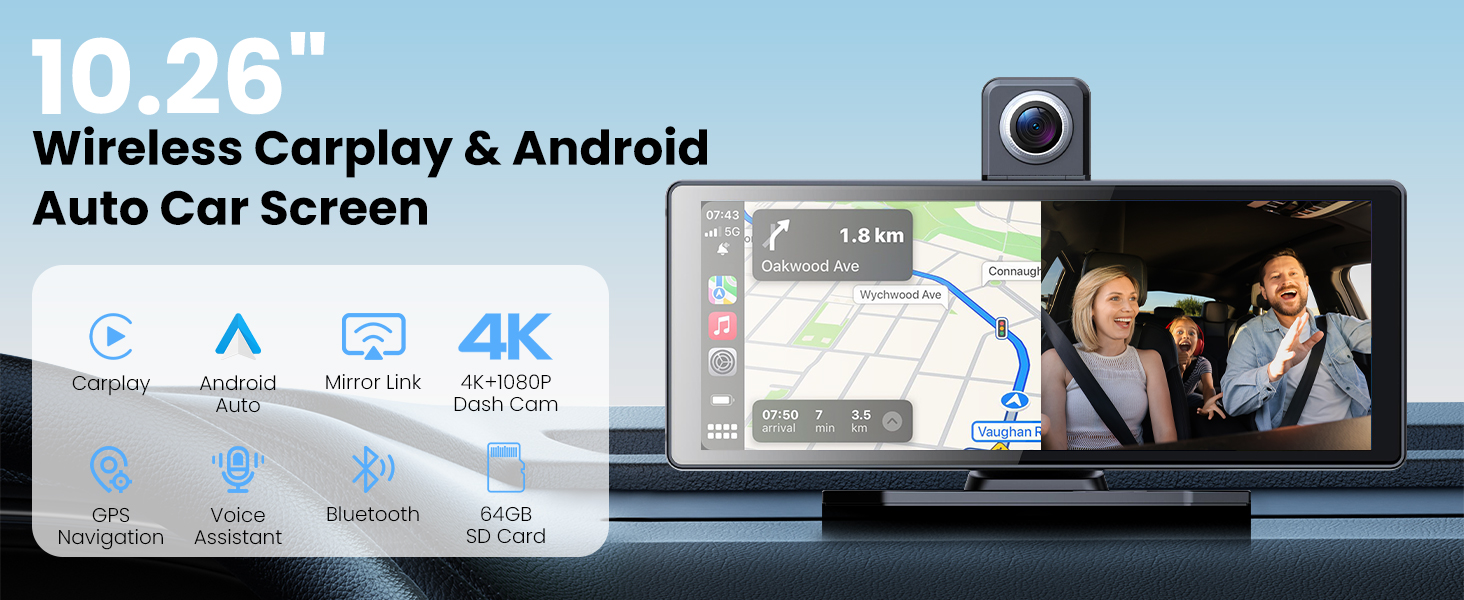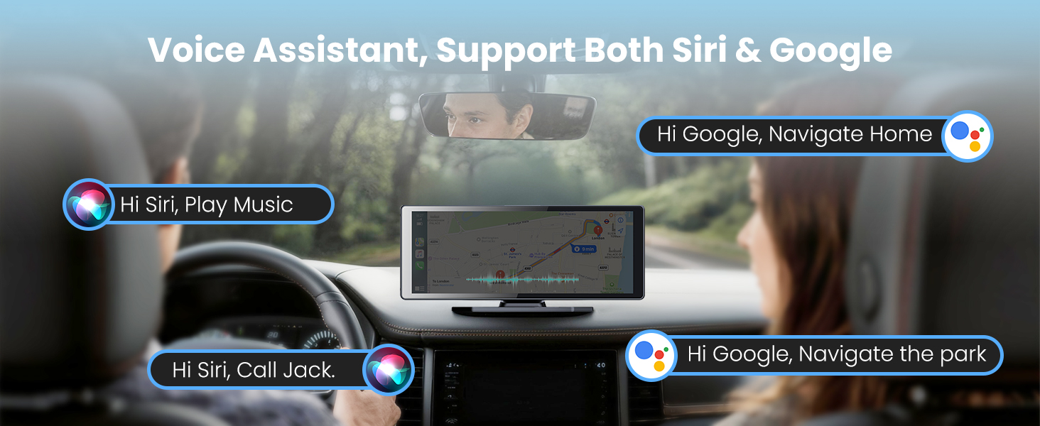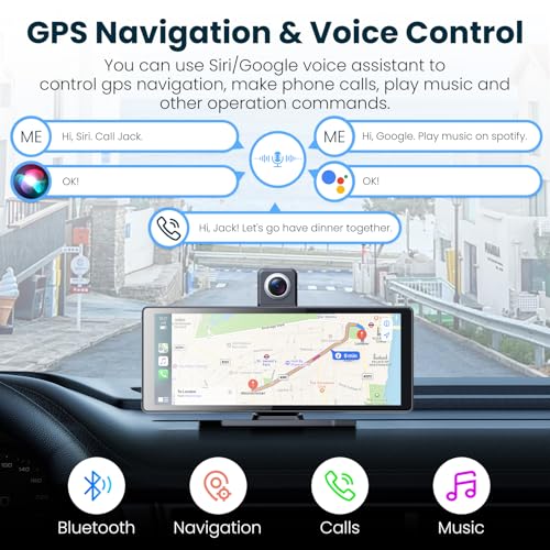 【Smart Voice Control & Real-Time Navigation】 Integrates Siri and Google Assistant for hands-free operation via voice commands—make calls, play music, and navigate routes effortlessly. Once connected to CarPlay/Android Auto, use apps like Google Maps directly on the 10.26-inch screen for real-time route guidance. The built-in noise-cancelling microphone ensures clear calls, allowing you to stay focused on driving safely without touching your phone