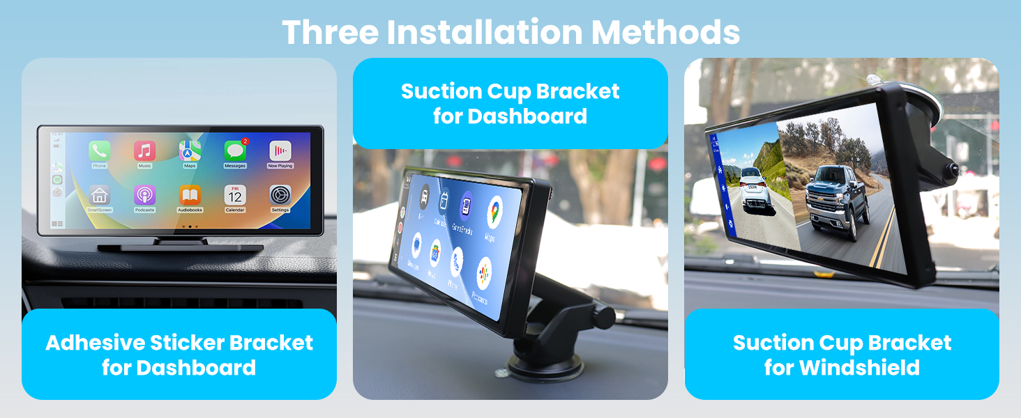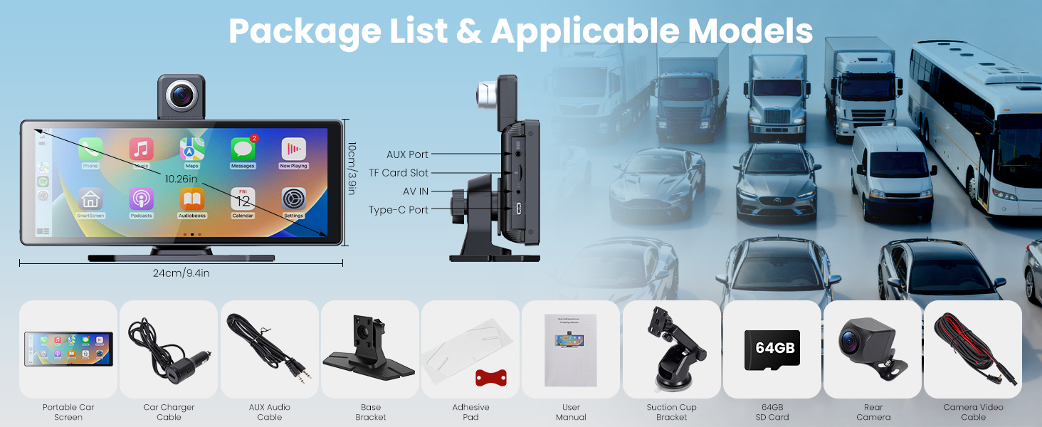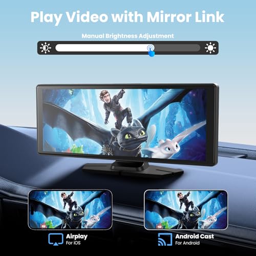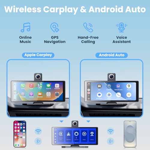 【Perfect for Older Cars & Easy Installation & Base Bracket】The wireless Apple car play screen/Android car play is powered by the cigarette lighter, plug-and-play, and designed specifically for older car models without smart screens. This carplay screen is compatible with almost all types of cars, sedans, trucks, etc. It integrates functions like driving recording, reverse camera, screen mirroring navigation, and voice control, enabling a low-cost smart upgrade for your car cabin