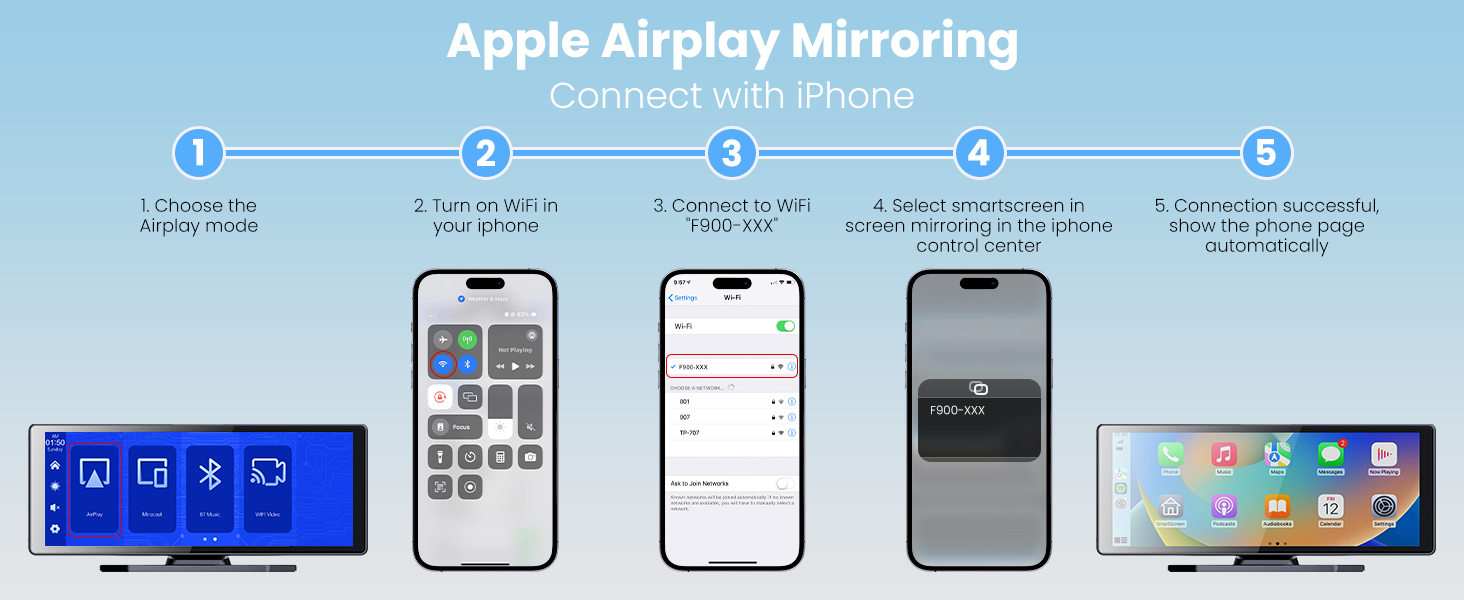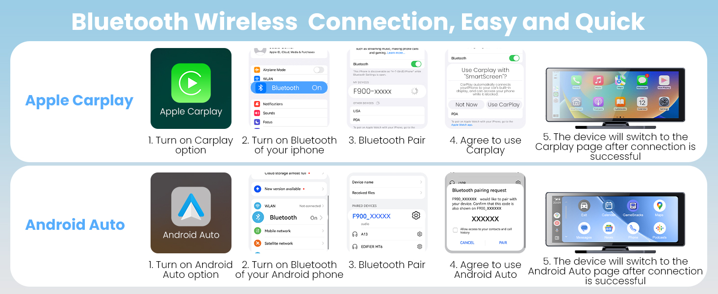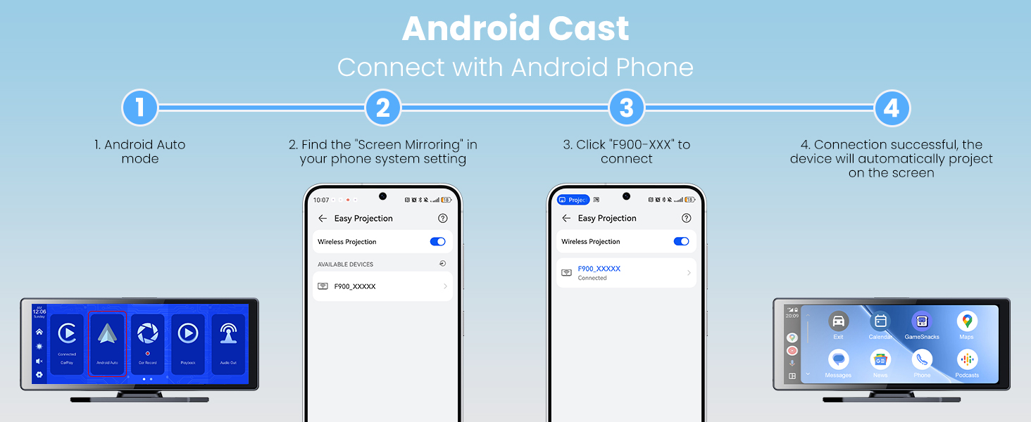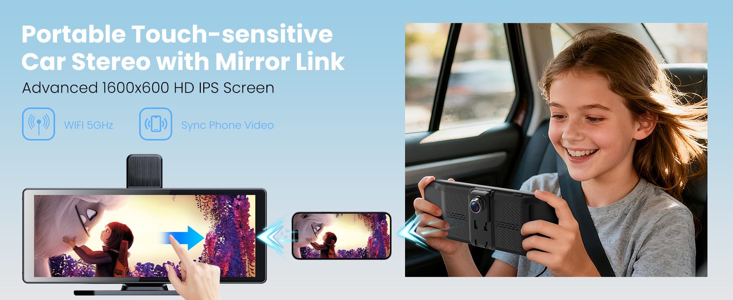 【Mirror Link】The Car Play screen supports screen mirroring for both iPhone and Android smartphones. Simply activate AirPlay for iPhone or Miracast for Android to start mirroring. Cast videos to the 4K large screen and enjoy an ultra-clear visual and auditory experience, perfect for movies, YouTube videos, and more