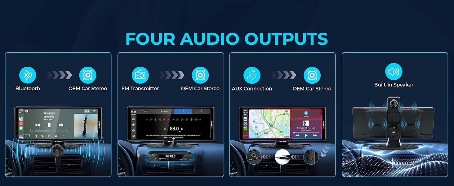 You can use Bluetooth, FM transmitter, AUX, or the built-in speaker, making it compatible with all vehicles.