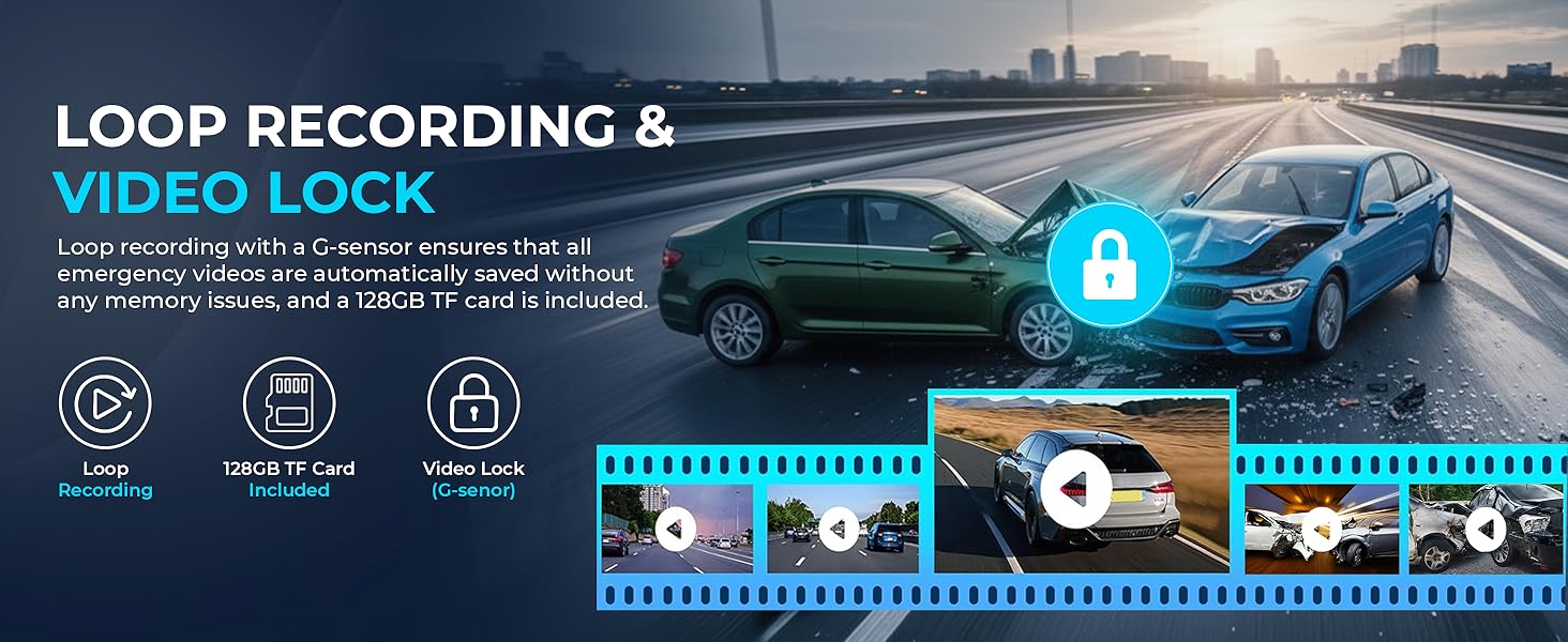 - Free 128GB TF Card Included — Comes ready to use with a FREE 128GB memory card, giving you hours of 4K + 1080p recording with zero extra cost.