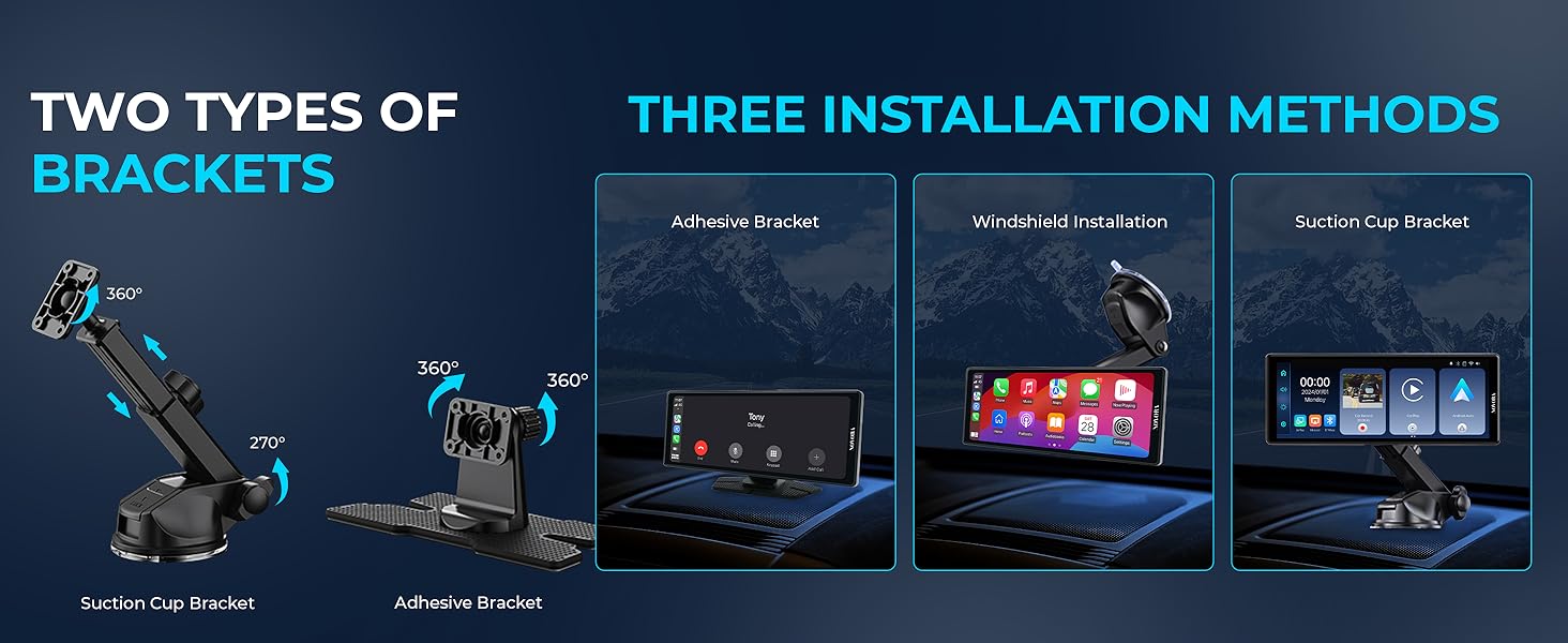 - Universal Fit for Any Car — Works in any car, van, truck, or SUV. Quick dashboard installation with all mounts and cables included.