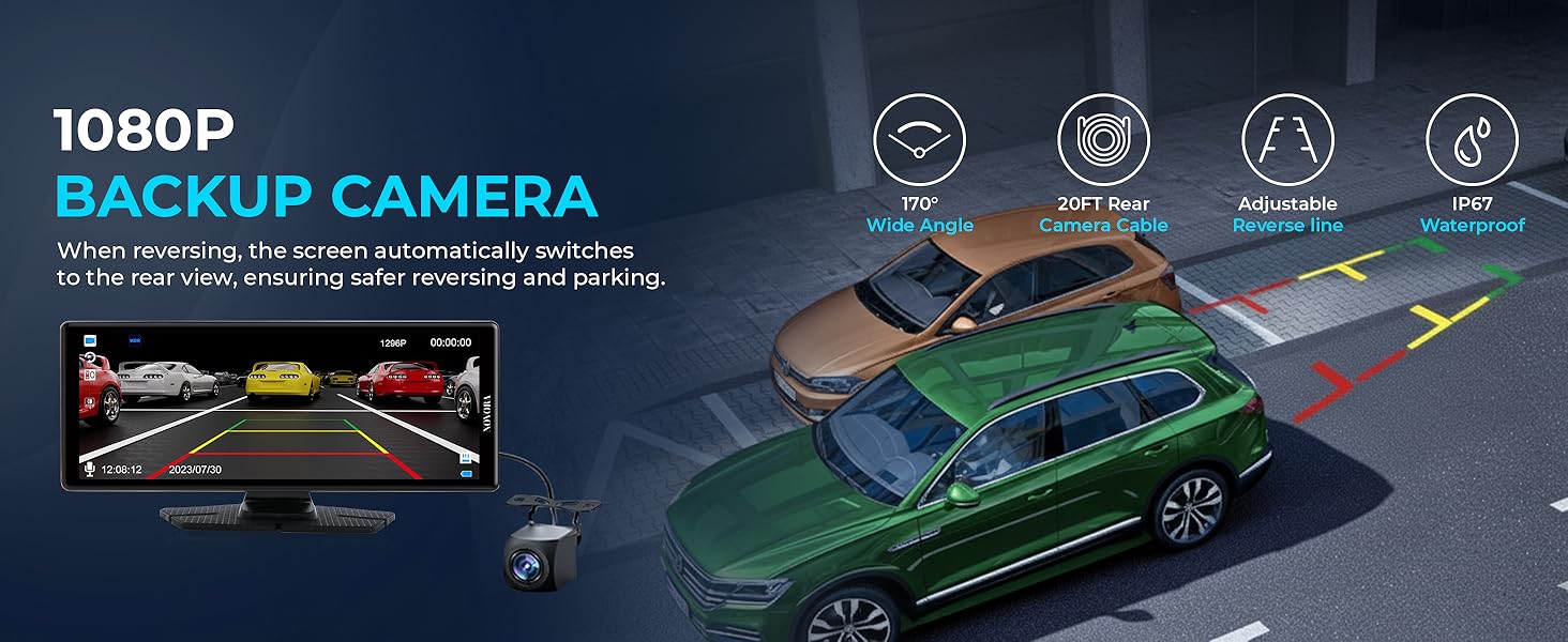 - 1080p Rear Camera Included — Clear 1080p waterproof rear camera for safer reversing and parking in all weather conditions.