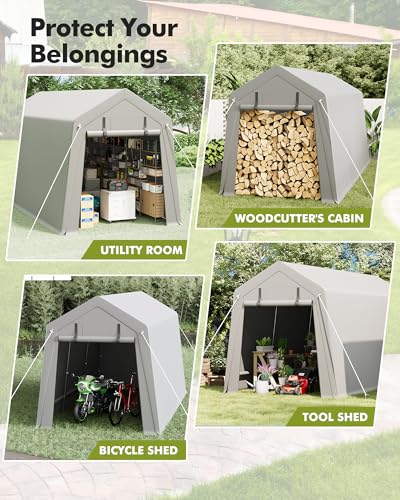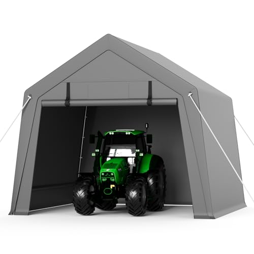10' x 15' Portable Garage Shed All Season Outdoor Storage Tent Heavy Duty with Roll Up Doors, Uv Resistant, Waterproof Backyard Shed For Tractor, Motorcycle, Atv, Grey