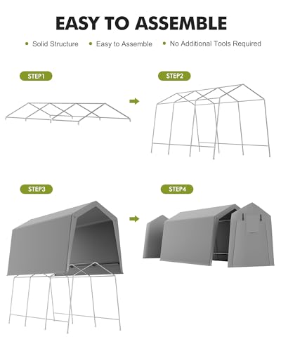 - Easy to Assemble: This motorcycle shelter features a solid structure that is easy to assemble with no additional tools required. Perfect for those looking for a quick and hassle-free setup for their storage tent for outside.