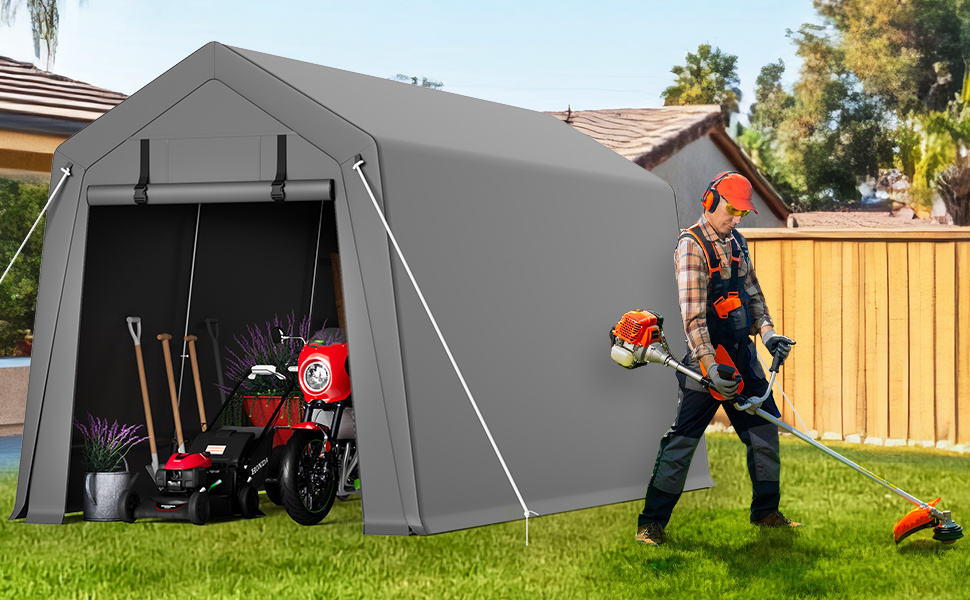 - Weatherproof : The Outdoor Storage Tent is made from 7.08 mil PE tarp material, providing excellent surdy, snow & UV resistance. It effectively protects motorcycles and stored items from UV rays and snow, ensuring the long-term use of the motorcycle shed.
