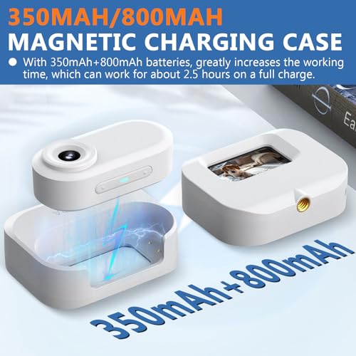 【Long Life Battery with Plus Battery Compartment】The thumb body camera is using dual battery design, which is the body battery + magnetic external battery compartment.The body has a built-in battery capacity of about 350mAh rechargeable batteries, and the magnetic charging compartment built-in 800mAh rechargeable batteries.The body camera can be adsorbed in the charging compartment and greatly increase the battery endurance, it can work about 180 minutes after a full charger.