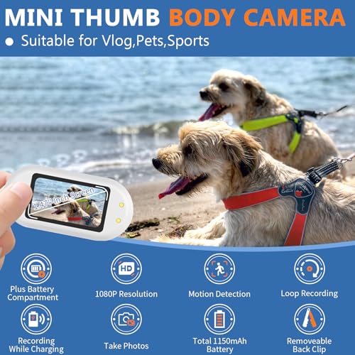 1080P Mini Body Camera,Pov Cameras Wearable Action Body Cam with Motion Detection, Thumb Size Hands Free Recording Body Worn Camera,Portable Video Camcorder Mount for Pets, Sports, Work, Travel