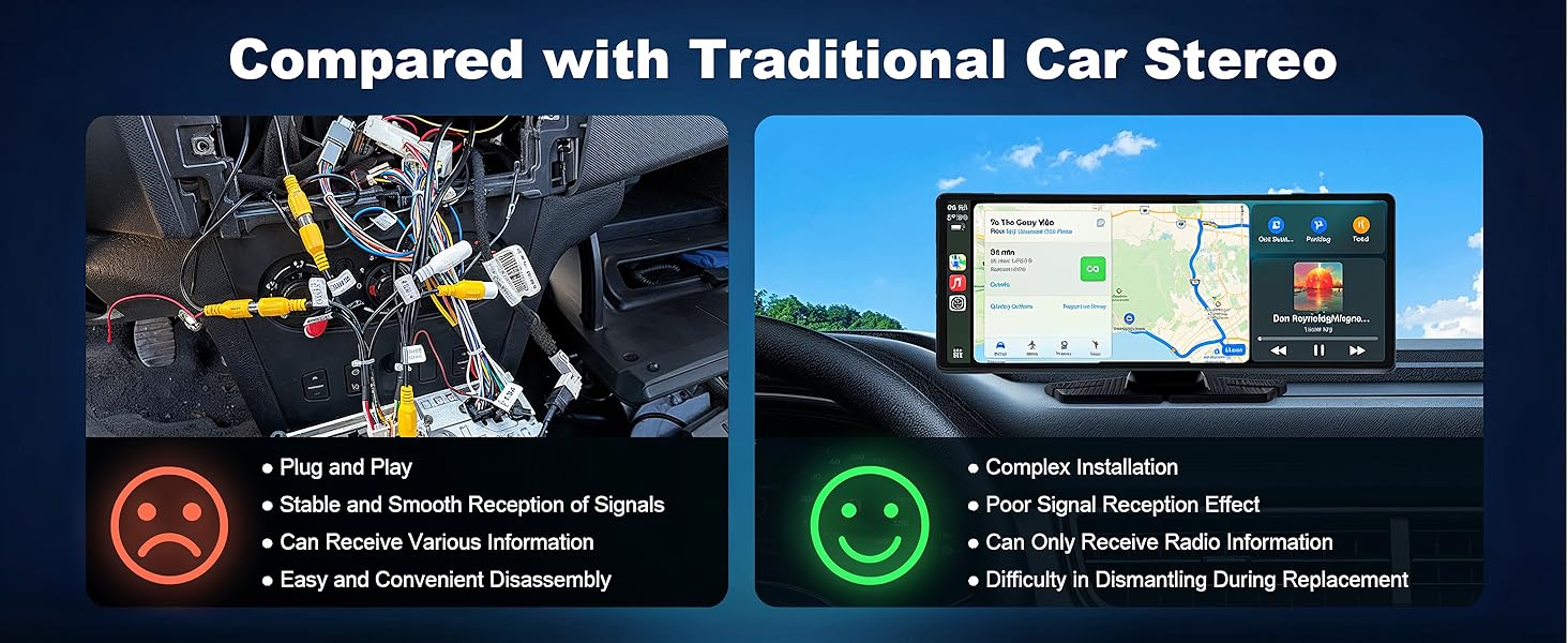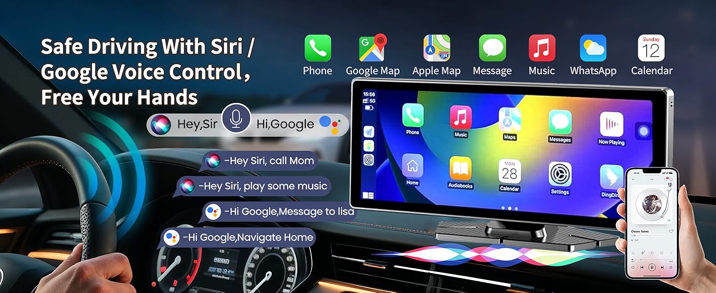 - Wireless Apple CarPlay & Android Auto – Stay connected on the road with wireless Apple CarPlay and Android Auto. Pair your smartphone via Bluetooth and Wi-Fi for hands-free calls, voice-guided navigation, and access to music, maps, and apps.