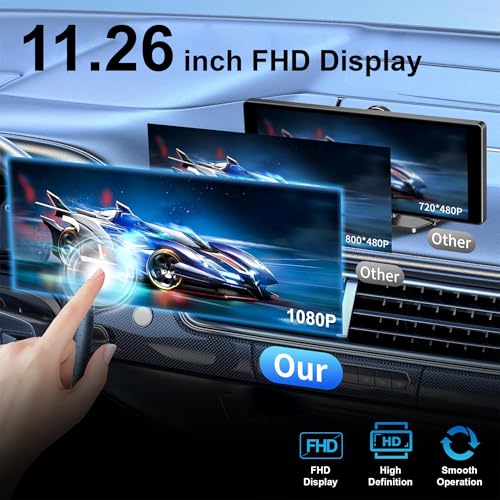 11.26″ Wireless Carplay Screen Dash Cam Carplay & Android Auto Car Stereo Car Audio Receivers with 1080p Backup Camera GPS Navigation/Mirror Link/Voice Control/Siri Fits for All Vehicles