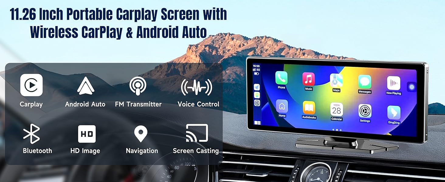 11.26″ Wireless Carplay Screen Dash Cam Carplay & Android