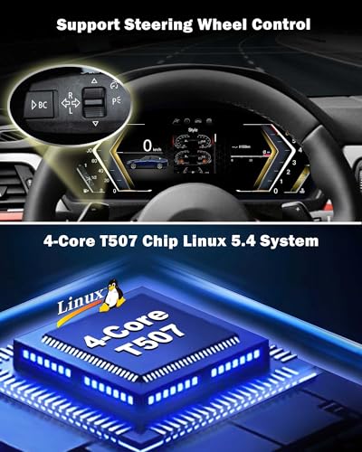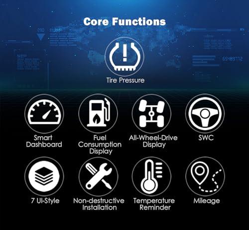 - ⭐️【Multifunctional】The automotive replacement instrument panel gauges is perfectly compatible with original car information, keep all original car's functions. Supports various functions such as the data display of original tire, oil and water temperature, fuel consumption, body balance adjustment function, etc. Support steering wheel buttons control, easily switch songs, channels and adjust volume, etc.