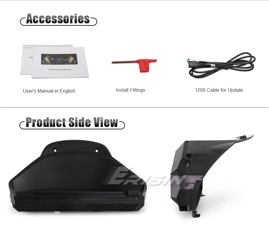 - ⭐️ 【Easy Installation】This digital instrument cluster is easy to install, no damage to the vehicle. No cutting or programming, can be plug and play. There is also a USB port for future software upgrades. NOTE: If you want to keep the original HUD functionality, please purchase a HUD decoder box from us.