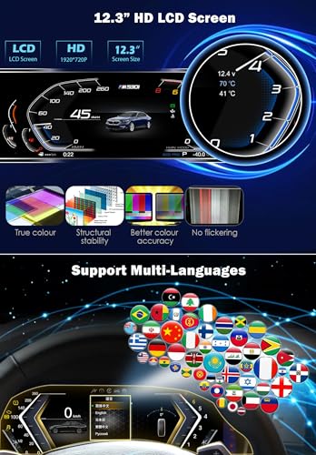 - ⭐️【Multi Language + 7 UI】This digital speedometer cluster support different operating system languages: English, Spanish, German, French, Italian, Turkish, Korean, Japanese, Chinese, Traditional Chinese, Russian, Arabic. And built-in 7 Theme UI-Style (Classic, Comfort, Sport, Tech, Minimalist, Luxury, and Night), personalised settings to suit your needs.