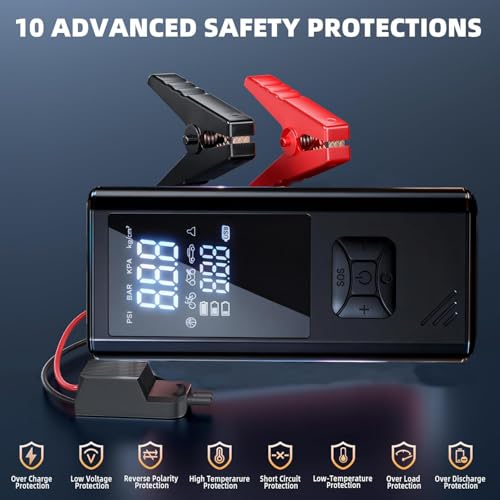 Smart Safety Protection Clips: Smart large clips and intelligent protection system guard against short circuits, overheating, overvoltage, overcharging, deep discharge, overcurrent and reverse polarity. Longer, thicker cables and high-conductivity clips ensure stable connections. Warning sounds and flashes activate for incorrect connections.