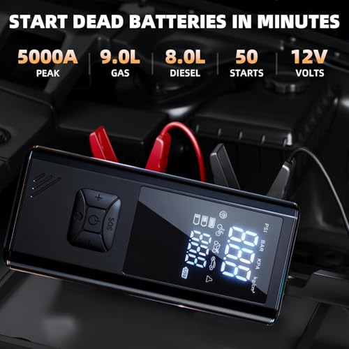 12000A Car Battery Booster Jump Starter Power Pack, 12V Starter Power Bank for All Gas/10L Diesel/Hybrid, Car Jump Starter Emergency Power Bank Battery Booster with Led Ligh