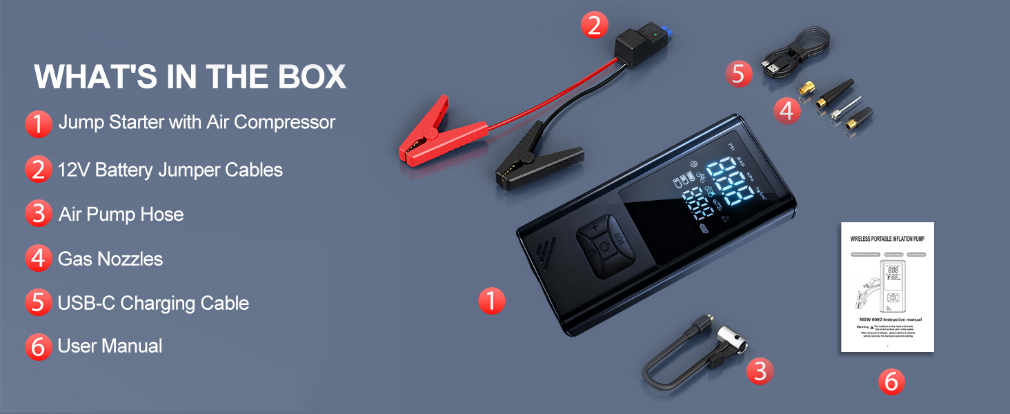 Important Tips: Fully charge before first use; jump-start when battery level is above 25%; recharge every 2-3 months to extend lifespan. Contact us anytime—customer service responds within 24 hours.