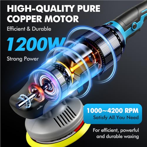 【8-Speed Adjustable for All Tasks】 1–8 speed settings (1000–4200 RPM) allow slow polishing, medium correction, or high-speed finishing. Lock-on switch supports continuous operation and reduces user fatigue.