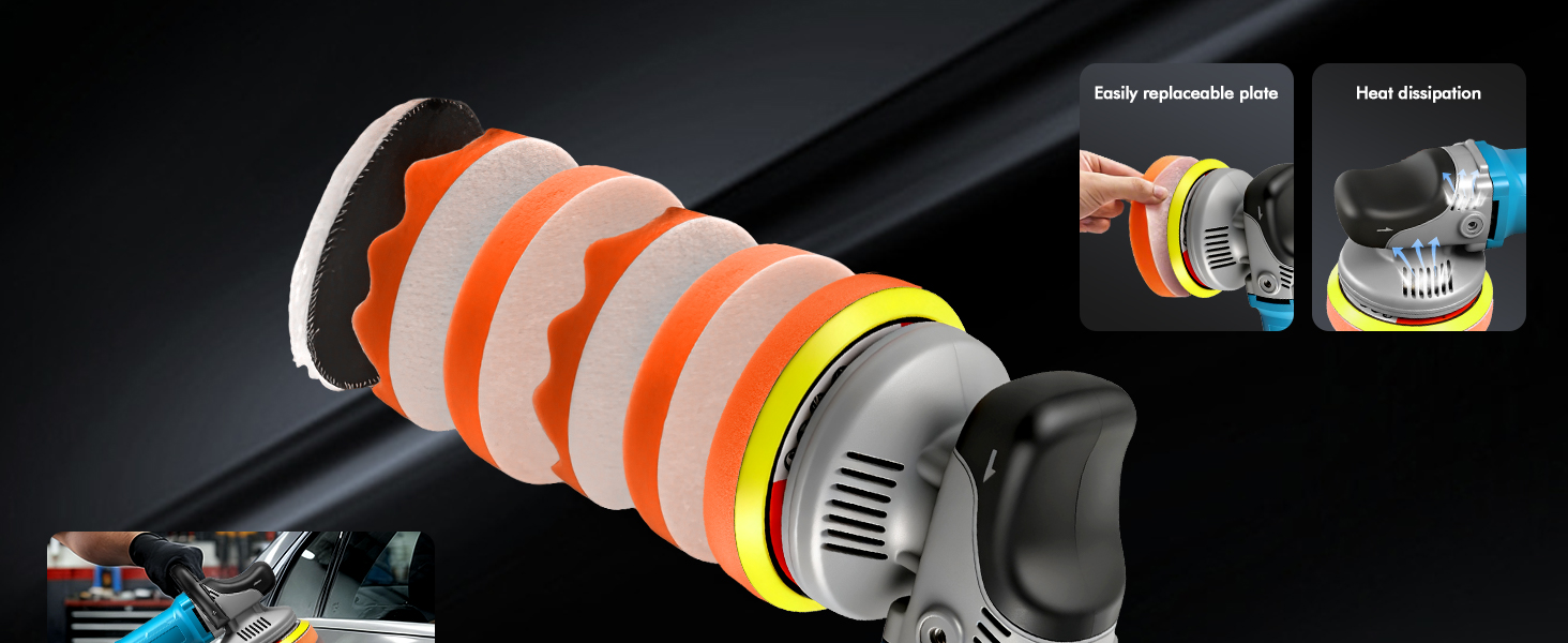 【Dual Action for Safe, Swirl-Free Polishing】 15mm orbit provides an even, low-heat motion that prevents paint burning and swirl marks. Ideal for beginners and professionals looking for safe, controlled results.