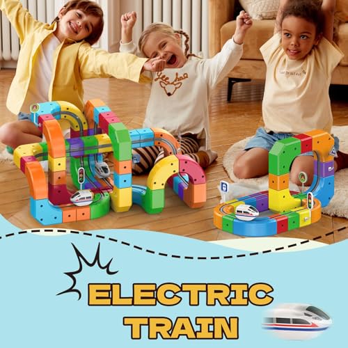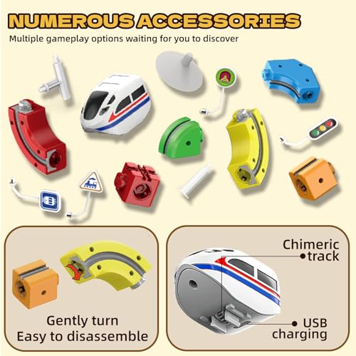 - 【Develops Key Skills Through Play】This magnetic train set promotes learning in an engaging, hands-on manner. Children enhance shape recognition, hand-eye coordination, and logical problem-solving as they experiment with various track configurations—making it perfect for cognitive development and creative thinking in growing minds