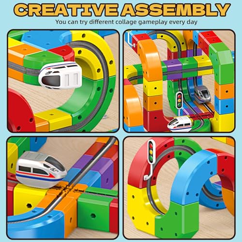 - 【Easy & Secure DIY Assembly】Featuring interlocking clips and colourful building blocks, the train set is both simple and secure to assemble. Pieces fit together firmly for stable, collapse-free racing, supporting layouts ranging from straightforward to complex. Durable and child-safe, it’s built to withstand energetic and extended play sessions