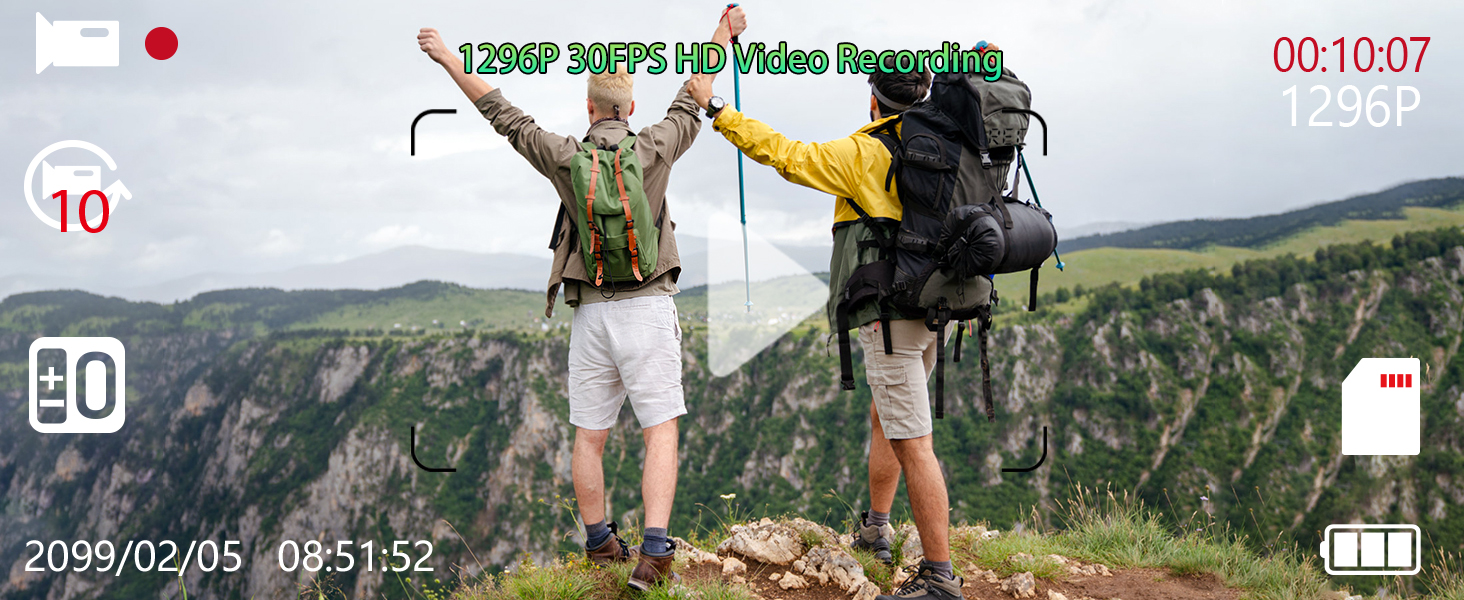 - User-Friendly, One-Slide Quick Recording & Screen Playback & Timestamp: Just slide the top video button on the right side—it starts recording in 1-2 seconds at power-on, ensuring you never miss a moment. Both beginners and professionals can master it quickly