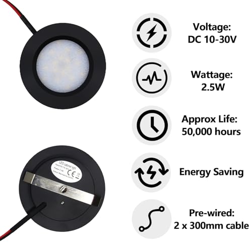 【Energy Efficient】Recessed spot lights have a compact and lightweight design, making them perfect for narrow spaces, for rv, motorhome, caravan, travel trailer, boat, kitchen, display case lighting etc, it saves up to 90% energy compared to halogen bulbs